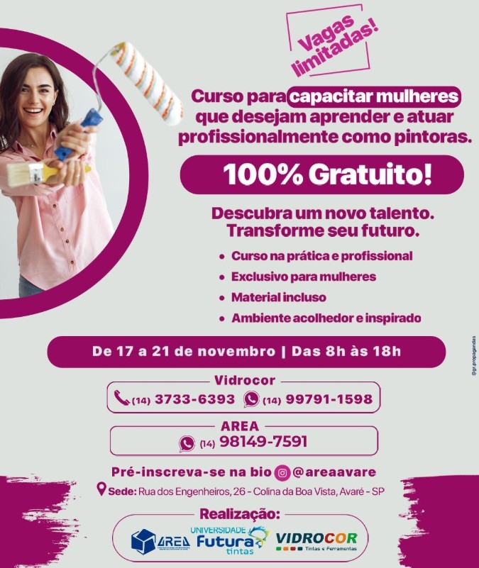 Essa é a sua chance de aprender uma arte que vai além das cores, é sobre criar, transformar e empoderar! Uma parceria incrível entre AREA, Universidade Futura e Vidrocor para oferecer a você: